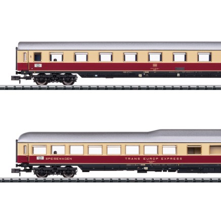 Um Platz für alle nötigen Einrichtungen im Speisewagen PLatz zu schaffen wurden die Schnellzug-Speisewagen der Bauart WRümh im Service-Bereich doppelstöckig ausgeführt und mit einem "Buckel" versehen. Das 2-teilige Wagenset vervollständigt den Rheinpfeil in TEE-Design.