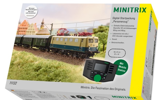Die Startpackung ist hochwertig ausgestattet, mit einem Personenzug der Epoche IV und den neuen Betonschwellengleisen von MINITRIX.